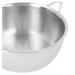Den koniske sauteuse uden låg måler 20 cm i diameter og kan indeholde op til 2 liter, hvilket gør den perfekt til alle slags saucer. Hældekanten sikrer nemt ophældning af varme væsker. Grydens form, som bliver bredere mod toppen, giver rigeligt med plads til at piske eller røre saucer og cremer.