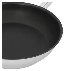 Steg nænsomt forskellige slags råvarer i Restoglide stegepanden fra Demeyere. Uanset om det er retter med æg, pandekager eller fisk, så vil de altid blive en succes takket være sandwich-bunden i flere lag med aluminiumkerne, da denne sørger for den optimale fordeling af varme over hele panden. Stegepanden måler 28 cm i diameter og er 5,7 cm høj.