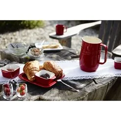 Tapassættet fra Staub er skabt til servering af lækre middelhavstapas, men kan naturligvis også bruges til andre snacks. Sættet har et dekorativt udseende i en smuk kirsebærrød farve, hvilket gør det ideelt til både hverdagsbrug og specielle lejligheder.