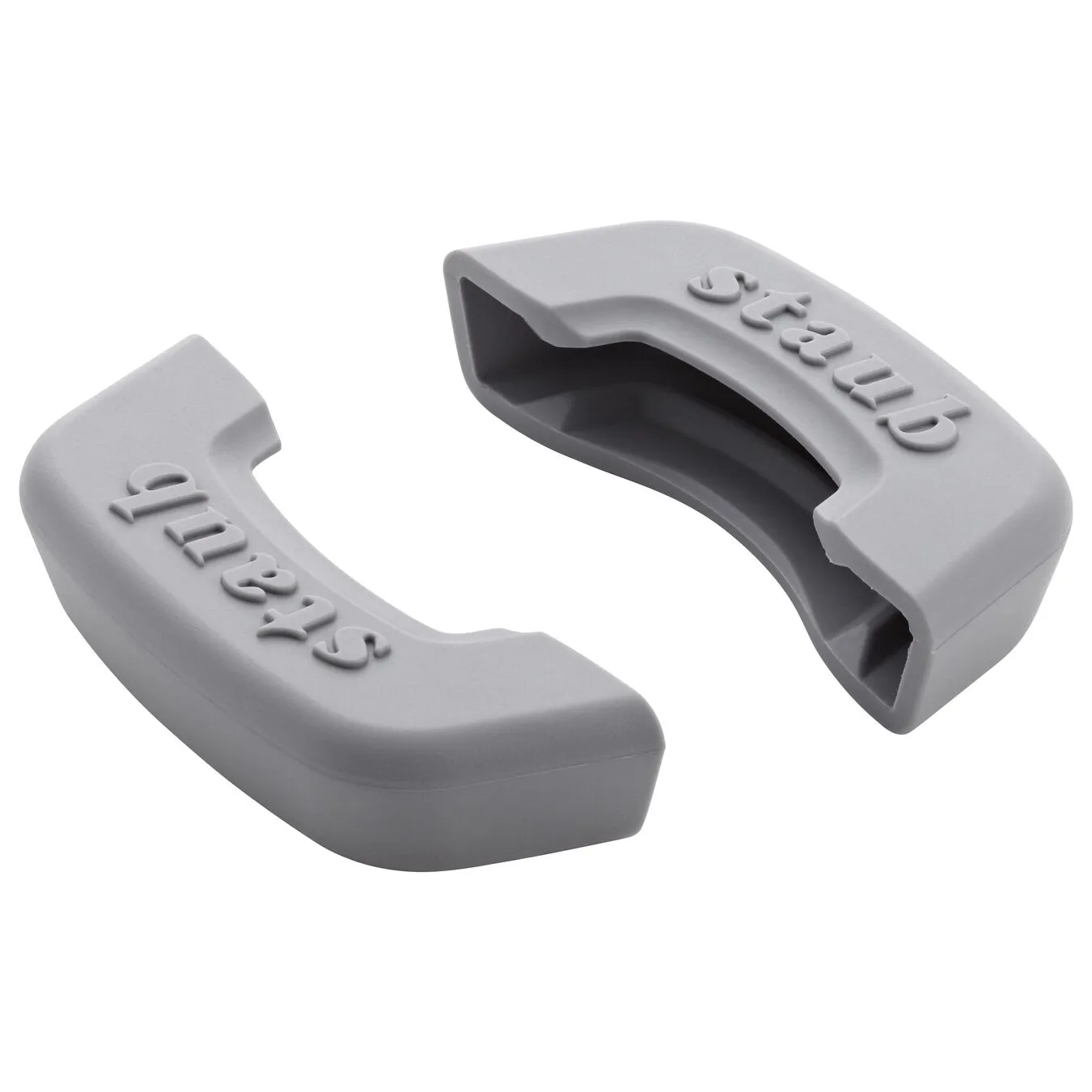 Du kan bære både de runde og ovale cocotter, samt wokken, fra Staub sikkert og nemt fra ovnen til bordet med disse silikonegreb. De kvadratiske greb i slidstærk silikone kan ubesværet fastgøres og tages af igen.