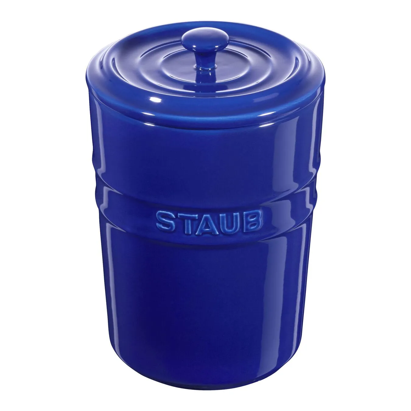 Den blå opbevaringsbeholder i stentøj fra Staub er ideel til mel, sukker, ris og andre fødevarer, som skal opbevares et tørt sted. Beholderne har en 1 liters volumen.