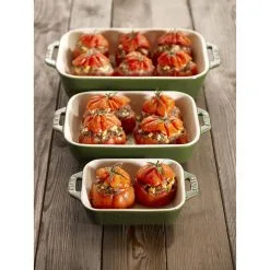 Det rektangulære fad fra Staub er perfekt til appetitvækkende gratiner eller søde desserter. Fadet måler 32 x 20,9 cm og dets smukke design gør det ligeledes ideelt til servering.
