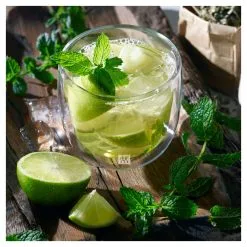 - Det dobbeltvæggede glas sikrer, at du ikke brænder hænderne når du holdet på glasset