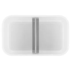 Den nye helt til køleskabet og frokostpauser: ZWILLING FRESH & SAVE 2-i-1 vakuum-lunchboks M har en kapacitet på 800 ml, et halvtransparent design og er ideel til transport af sandwiches og små frokostretter. Takket være deleren kan du hurtigt dele snackboksen op i to rum for at holde forskellige madvarer adskilt. Beholderen er fremstillet af brudsikkert plastik og er særlig robust til transport i skoletasker eller kontorposer. Boksen er lækagesikker, når den er vakuumforseglet, og efter brug lukkes den sikkert med de separat tilgængelige elastikbånd.