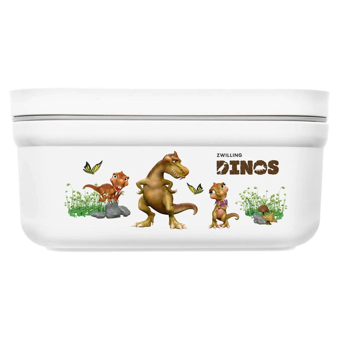 Dinosaurer er sjove på farten! ZWILLING DINO vakuummadkasse i str. S i et børnevenligt design giver små eventyrere friske og sunde snacks med på farten. Forbered på forhånd, sug luften ud af madkasses med en ZWILLING FRESH & SAVE vakuumpumpe, og de små snacks er klar til de næste par dage.