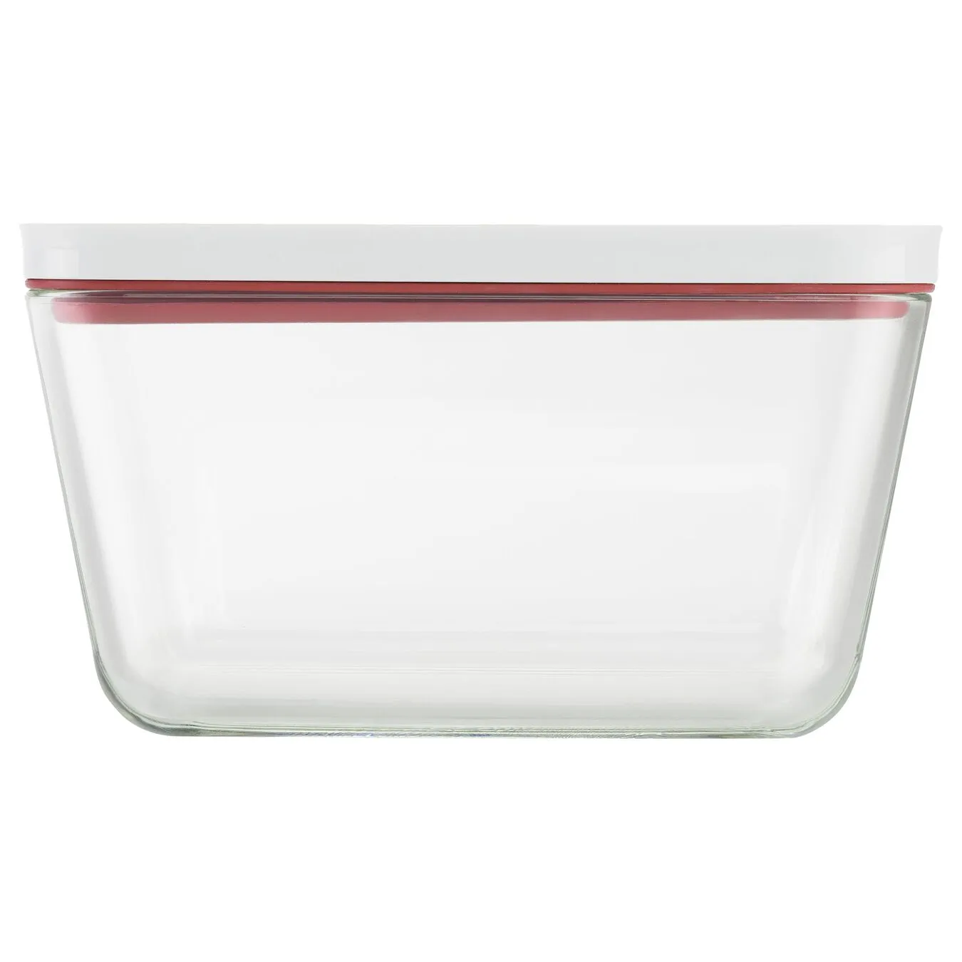 Vakuumbeholderens borosilikatglas er ovn- og mikrobølgeovnsikkert (uden låg i ovn), så du kan opvarme din mad direkte i vakuumboksen uden besværet med at skifte beholder. Boksen tåler også opvaskemaskine, hvilket gør rengøring til en leg for børn. Vakuumkassen med sine røde silikoneelementer ser også rigtig flot ud i køkkenet.