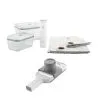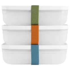 Det bedste af det hele er, at madkasserne er så flade, at du nemt kan stable dem i dit køleskab. Vidunderligt pladsbesparende. Takket være den halvtransparente plast kan du altid se, hvad der er i dine kasser, uden at du behøver at tage dem ud af køleskabet. Da beholderne er lufttætte og lugtfri, kan du endda opbevare pålæg og andre stærkt lugtende madvarer i dem. Efter brug er kasserne, der tåler opvaskemaskine, nemme at rengøre.