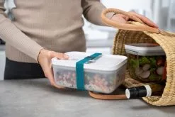 Kan du ikke få nok af frisk mad? Så er dette ZWILLING FRESH & SAVE tilbehørssæt lige noget for dig. Her finder du masser af opbevaringsideer til at holde dine fødevarer friske op til fem gange længere tid sammenlignet med opbevaring uden vakuum med din ZWILLING FRESH & SAVE vakuumpumpe. Først de tre vakuumkasser i S, M og L. De giver den optimale størrelse til alle dine fødevarer: Fra små æbleskiver til et komplet måltid har du nu altid den rigtige vakuumboks ved hånden. Som en yderligere opbevaringsboks indeholder dette sæt også en vakuumkøleskabskasse. Den er ekstra flad og passer i ethvert køleskab – ideel til dine pålæg eller ost. Alle fire vakuumbokse er fremstillet af BPA-fri plast af høj kvalitet. Det gør dem ikke kun særligt stødsikre, men også velegnede til frysere og mikrobølgeovne. De tåler også opvaskemaskine og er derfor nemme at rengøre.